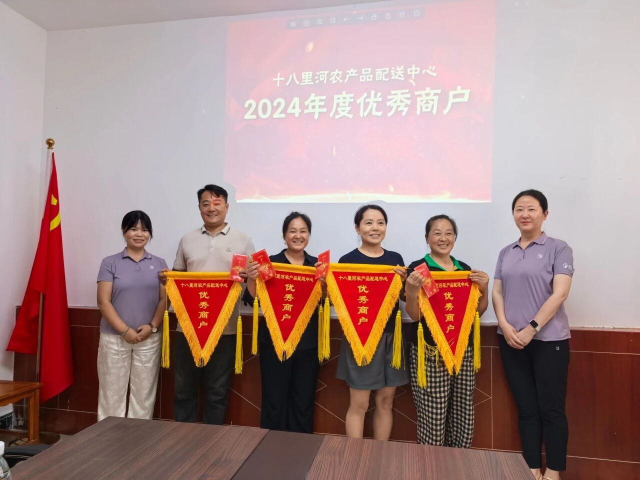 为深入践行“共建市场、共谋发展、共享资源、共建文明”理念,促进商户良性互动与经营黏性,7月29日上午,十八里河农产品配送中心开展2024年度“优秀商户”表彰活动,对市场内恪守承诺、诚信经营的个体商户予以表彰,共同推进市场治理与精神文明建设迈上新台阶。